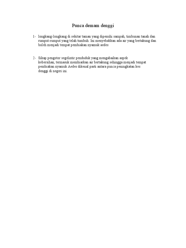 Related : Punca Pembiakan Nyamuk Aedes / Memandangkan bertambahnya penyakit ini di kawasan bandar..